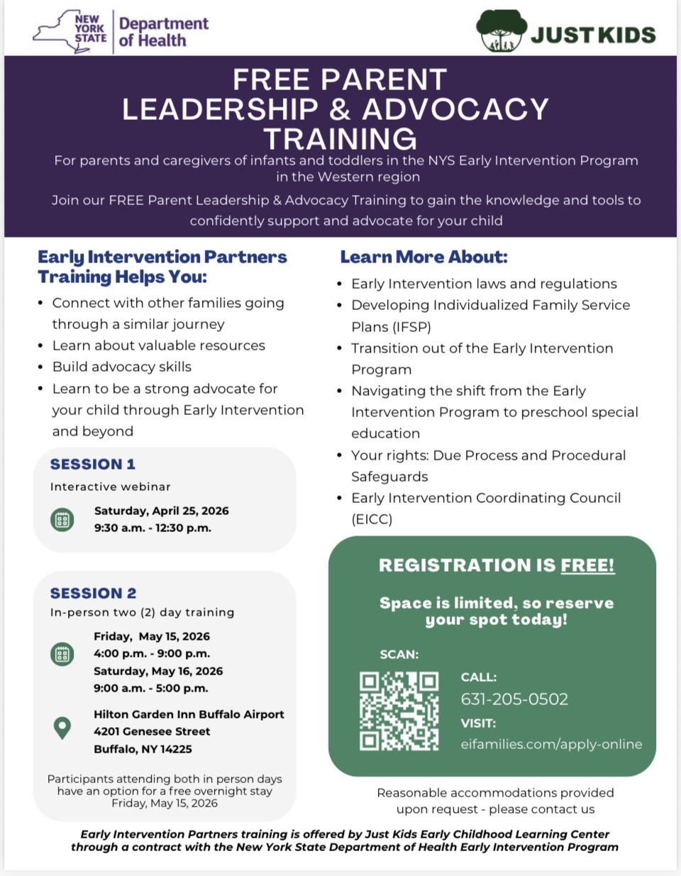 Session II: Friday, May 15, 2026 (4:00 p.m.-9:00 p.m.) and Saturday, May 16, 2026 (9:00 a.m. - 5:00 p.m.) Two-day, in-person training to be held at the Hilton Garden Inn Buffalo Airport, 4201 Genesee Street, NY 14225.