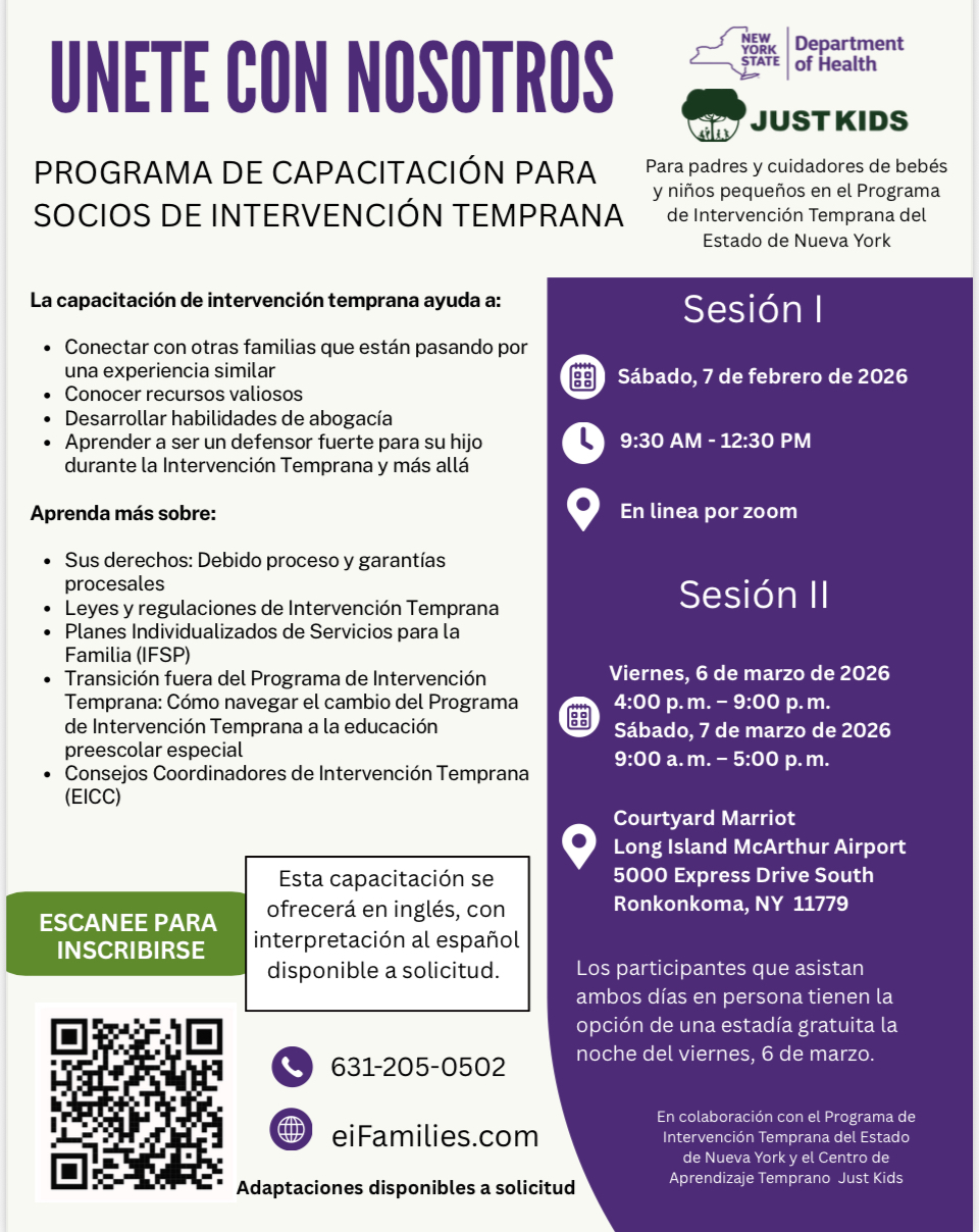 Sesión I: Sábado 7 de febrero de 2026 (9:30 a.m. -12:30 p.m.) Seminario web interactivo en vivo sobre resultados funcionales del Plan de Servicio Familiar Individualizado (IFSP) (participe desde casa en una computadora personal o dispositivo móvil)